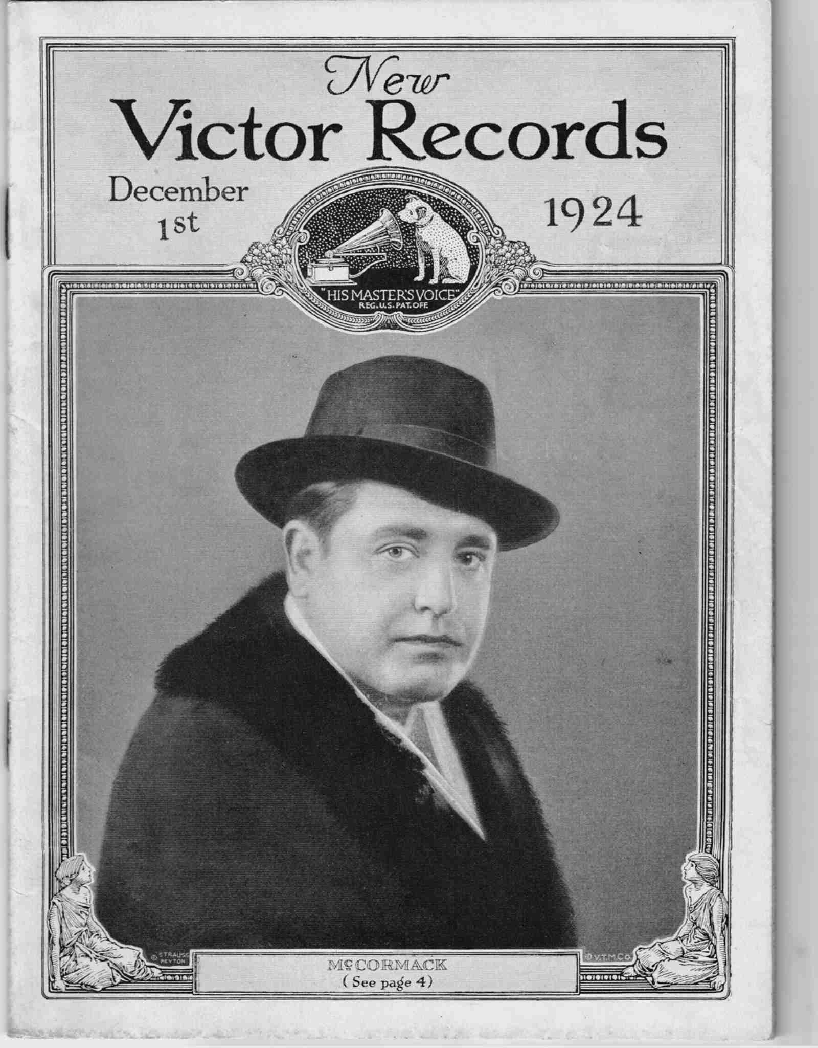 McCormack sold millions of records for the Odeon, Victor and HMV companies over the decades, and this small booklet was sent to dealers to advertise the latest Victor 78 records. It is the end of the 30-year acoustic recording era and mid-point in McCormack's nearly 40-year career. He would record his first electrical records in April, 1925. |